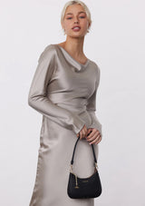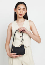 The Sammie Mini Bag from SABEN is crafted in a luxurious pebbled leather and accented with gold hardware. Designed to carry the essentials, Sammie will sit comfortably under your arm, carried lovingly to your next girl’s brunch or on a night across town.
