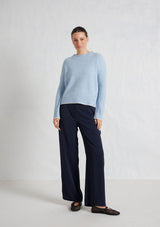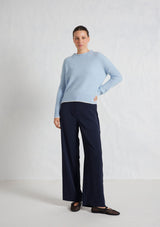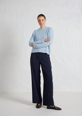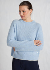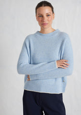 The Arancia Sweater from Alessandra is a cozy essential for the colder months ahead. This sweater features a high crew neck, drop shoulder, contrasting coloured trim and a boxy cut that provides a relaxed fit. Crafted from 100% Cashmere, this medium weight textured rib knit offers both warmth and softness.