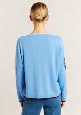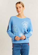 The Bianca Sweater from Alessandra features a crew neckline, full length sleeves and ribbed detail on the neck, cuffs and hem. Crafted from 100% cotton, this lightweight and breathable sweater showcases colourful embroidered flowers for a touch of playful fun. Perfect for spring, its cheerful design adds a hint of colour to any outfit, making it ideal for brightening up casual ensembles or layering over your favourite pieces.