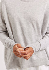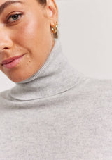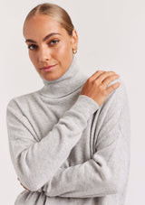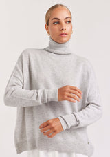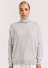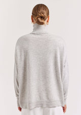 The A Polo Bay Sweater from Alessandra features a boxy oversized design with turtleneck, full length sleeves and ribbed detailing on the cuff and hemline. This designer sweater is crafted from 100% Cashmere.