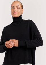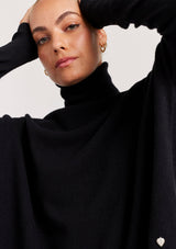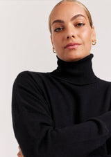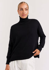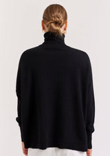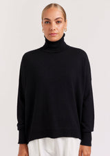 The A Polo Bay Sweater from Alessandra features a boxy oversized design with turtleneck, full length sleeves and ribbed detailing on the cuff and hemline. This designer sweater is crafted from 100% Cashmere.