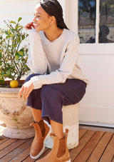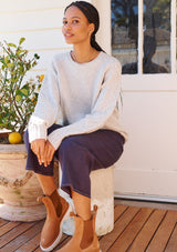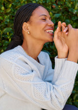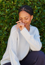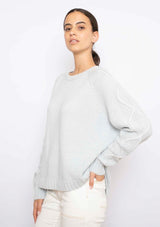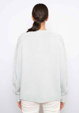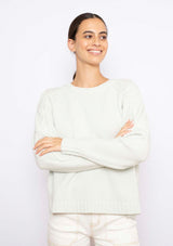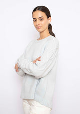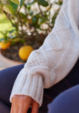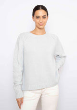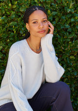 The Clifftop Cable Sweater features a boxy design with a crew neck, long sleeves, cable knit detail on the arms and ribbed detailing on the neck, cuff and hemline. This designer sweater is spliced with various tonal colours and is crafted from a wool and cashmere blend.