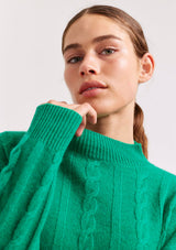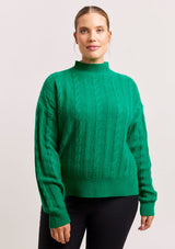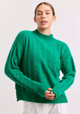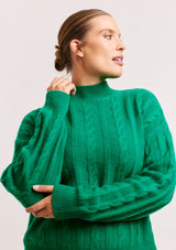 The Colbie Sweater from Alessandra features a cable knit design with a high neckline, full length sleeves and ribbed detailing on the cuffs and hemline. This classic sweater is crafted from 100% Cashmere.