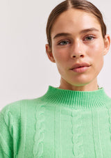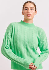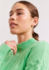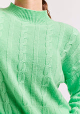 The Colbie Sweater from Alessandra features a cable knit design with a high neckline, full length sleeves and ribbed detailing on the cuffs and hemline. This classic sweater is crafted from 100% Cashmere.