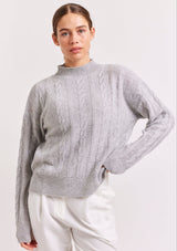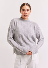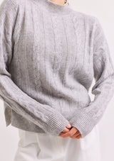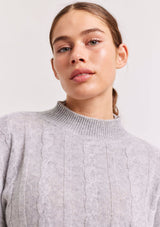 The Colbie Sweater from Alessandra features a cable knit design with a high neckline, full length sleeves and ribbed detailing on the cuffs and hemline. This classic sweater is crafted from 100% Cashmere.