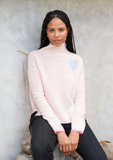 The Cupid Polo by Alessandra features a relaxed design with a funnel neck, drop shoulder, full length sleeves with ribbed detailing on the neck, cuffs and hemline. This designer sweater is crafted from 100% Cashmere.