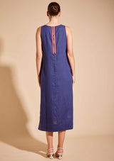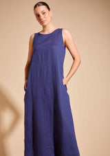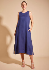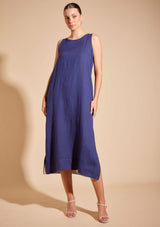 The Esme Dress from Alessandra features a sleeveless design with a crew neckline, exposed gold/red coloured back zip opening, side pockets and a deep hem with side splits and contrast coloured inside hem panel. This slightly A-line midi length dress is crafted from 100% Linen; a non-stretch fabrication that is breathable and ideal for everyday wear.