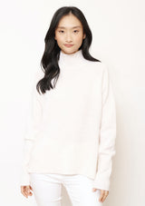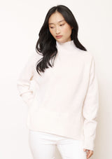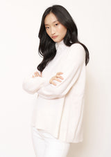 The Fifi Polo Sweater features relaxed boxy fit with a ribbed turtleneck, raglan shoulder and ribbed detail cuffs and hemline. This designer sweater is crafted from a 100% Cashmere.