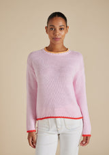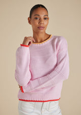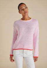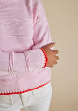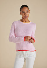 The Grace Sweater from Alessandra features a high crew neckline, full length sleeves and ribbed detailing on the neck, cuffs and hemline. Crafted from 100% Cotton, this sweater trimmed with coloured detail will keep you comfortable with its light weight and breathable design.