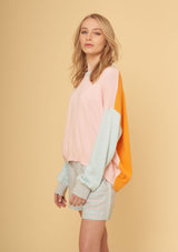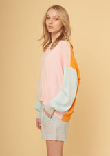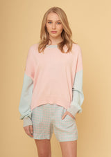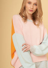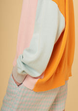 The Alessandra Harper Sweater features a relaxed design with a round neck, long sleeves and a dropped shoulder. This boxy sweater is crafted from a 100% Cotton and is spliced in an assortment of tonal colours.