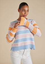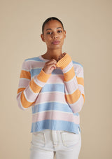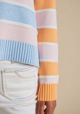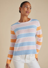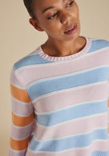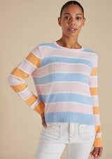 The Ivy Sweater from Alessandra features a crew neckline, full length sleeves and ribbed detailing on the neck, cuffs and hemline. Crafted from 100% Cotton, this colourfully striped sweater not only adds a pop of colour to your wardrobe but also keeps you comfortable with its light weight and breathable design.