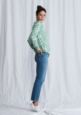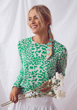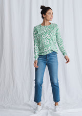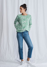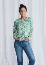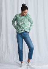 The Alessandra Leopard Cindy Sweater features a relaxed fitted design with crew neck, long sleeves and ribbed detailing on the cuff and hemline. This designer sweater is crafted from a Cashmere/Cotton blend.