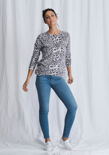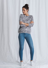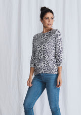 The Alessandra Leopard Cindy Sweater features a relaxed fitted design with crew neck, long sleeves and ribbed detailing on the cuff and hemline. This designer sweater is crafted from a Cashmere/Cotton blend.