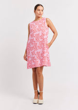 The Lenna Dress by Alessandra features a sleeveless crew neck, side pockets, exposed metallic back zipper opening and a slightly A-line shaped silhouette. This shift dress is crafted from 100% Linen, a non-stretch fabrication that is breathable and ideal for everyday wear.