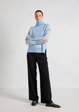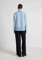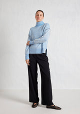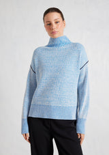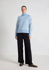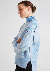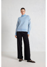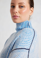 The Maxie Sweater from Alessandra features a ribbed knit design with a funnel neckline, full length sleeves, contrast coloured detailing and a hemline that steps down to a slightly longer length at the back. Crafted from a cozy wool and cashmere blend it's the perfect complement for cooler days.