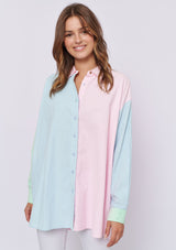 The Mix it Up Shirt by Alessandra is features a collar, long sleeves with cuffs, a slight high/ low hemline and spliced colour detail throughout. This pinwale corduroy shirt is crafted from 100% Cotton.