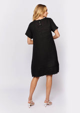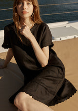 The Mod Dress from Alessandra features a flattering crew neckline with short sleeves and scalloped detailing. This A line dress is crafted from 100% Linen; a non-stretch fabrication that is breathable and ideal for everyday wear.