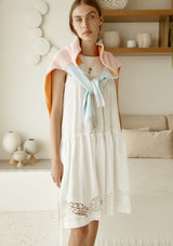 The Roma Dress by Alessandra features a square neck, pintuck detail, drop waist with soft gathering and embroidery detailing on shoulder and hem. This sleeveless pull on dress is crafted from 100% Linen, a non-stretch fabrication that is breathable and ideal for everyday wear.