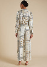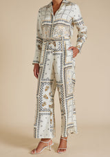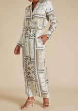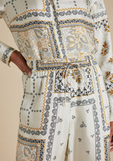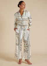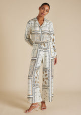 The Sabrina Pant from Alessandra features an elasticated waistband with rouleau tie, side welted pockets and a full length leg with a wide leg silhouette This pant is crafted from 100% Silk, offering a breathable and comfortable option for everyday wear.