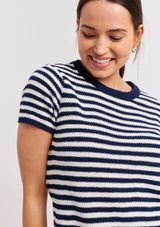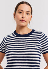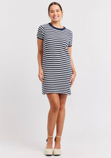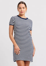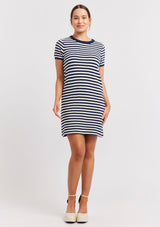The Taralli Dress from Alessandra features a round neckline, short sleeves and contrast stripe finish. This designer dress is crafted from 100% Cotton