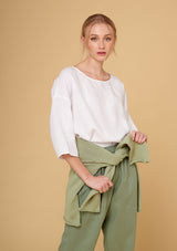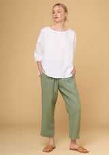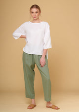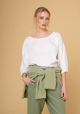 The Windcheater Top by Alessandra features a crew neck with a drop shoulder and ¾ sleeves. This relaxed top is crafted from 100% linen; a non-stretch fabrication that is breathable and ideal for everyday wear.