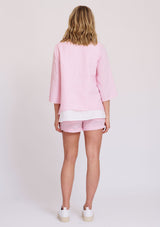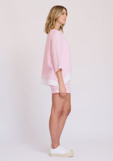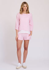 The Panama Top by Alessandra is crafted from 100% Linen and features a wide neckline, ¾ sleeve and a relaxed boxed shape silhouette. This Top has 2 inbuilt layers; the top layer being a Petal Pink with a white cross dye under layer.