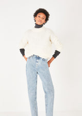 The Atabury Jumper by American Vintage features a high crew neck and long sleeves with ribbed detailing. This jumper is crafted from a wool blend which makes it soft to the touch and comfortably warm for winter wear.