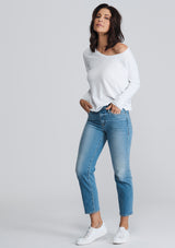 The Sonoma T-Shirt by American Vintage features a relaxed design with a round neckline, dropped shoulders and full length sleeves. It is crafted from 100% Cotton and has a soft fleck finish in the fabrication.