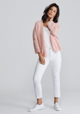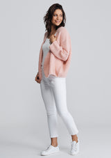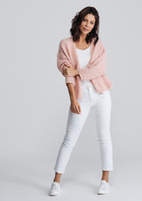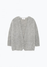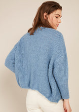 The American Vintage Boolder Cardigan features an oversized design that is slightly cropped, drop shoulder with 7/8 sleeves and round neckline. Crafted from an Alpaca & Wool blend.