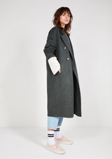 The Dadoulove Coat is unique with its double-sided fabric. Its rounded loose fit combine casual wear and fashion for a naturally sophisticated look. It is warm and ideal for the beginning of the season.