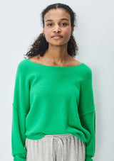 The American Vintage Damsville Sweater features a wide neckline, drop shoulder, full length sleeves and ribbed detailing on the cuffs and hemline. Crafted from a wool blend, this incredibly soft sweater   is perfect for staying cozy and warm