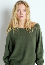 The American Vintage Damsville Sweater features a wide neckline, drop shoulder, full length sleeves and ribbed detailing on the cuffs and hemline. Crafted from a wool blend, this incredibly soft sweater   is perfect for staying cozy and warm