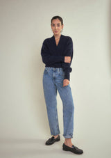The East A Cardigan by American Vintage features an open front, long banded sleeves and a banded texture pattern in the body. This cardigan is crafted from an Italian wool blend and does not require fastenings as it is designed to wear open.