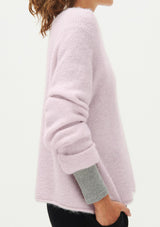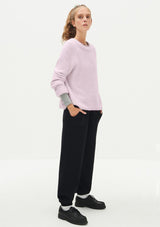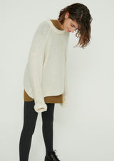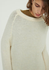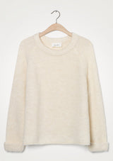 The East A Jumper by American Vintage features a round thick banded neckline, long sleeves and a rolled fabric hem. This jumper is crafted from a wool blend and designed to be worn loose for winter wear.