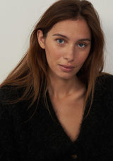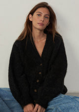 The Foubay Cardigan from American Vintage features a V-neckline with button closure, full-length sleeves and ribbed detail on neck, cuffs and hemline. Crafted from a thick wool blend, this jumper is incredibly soft to touch.