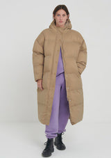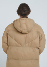 The Kolby Coat by American Vintage features a high standing collar with hood, button down centre placket with zip fastening and welt pockets. This oversized puffer coat is expertly quilted with warm padding and designed to ensure maximum comfort.
