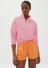 The Limabird Sweater by American Vintage features a funnel neck with zip opening and long sleeves. This sweater is crafted from 100% organic cotton. The thick waffled fabric is designed for comfort and warmth.