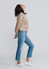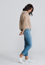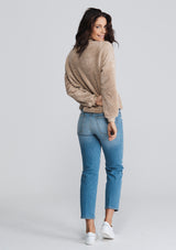 The American Vintage Nikita Sweatshirt features a relaxed fit design that is slightly cropped, drop shoulder, long sleeves and boat neckline. Crafted from 100% Polyester, this garment has been brushed and tickled to give it a fluffy, soft and cuddly feel.