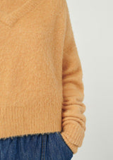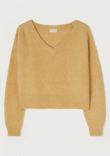The Ozolittle V Neck Jumper by American Vintage features a V neckline with ribbed detail, drop shoulders with ribbed detail on cuffs and hemline. This loose fit jumper is crafted from a wool blend and is incredibly soft to touch.