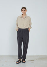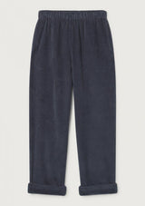 The Padow Trousers by American Vintage feature an elasticated waist with a hidden drawstring, pockets and a curved-line straight leg. This Jogger is crafted from 100% ribbed cotton and designed for comfort and warmth.