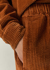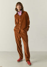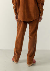 The Padow Trousers by American Vintage feature an elasticated waist with a hidden drawstring, pockets and a curved-line straight leg. This Jogger is crafted from 100% ribbed cotton and designed for comfort and warmth.