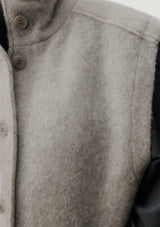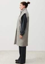 The Roly Sleeveless Coat features a high stand collar, button through centre opening and functional welted pockets. Crafted from 100% wool, this mid length sleeveless coat is designed for a relaxed tailored fit that combines casual wear and fashion for a naturally sophisticated look.