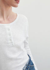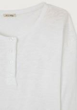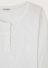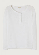 The Sonoma L/S Henley T-Shirt by American Vintage features a crew neckline with button opening and long sleeves. This T-Shirt is crafted from 100% Cotton and has a soft fleck finish in the fabrication.