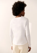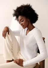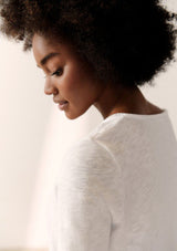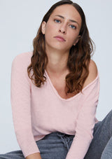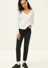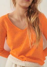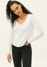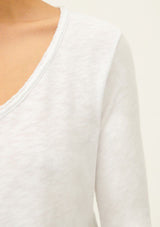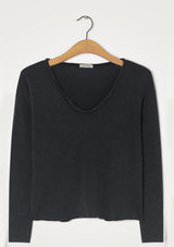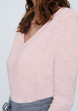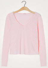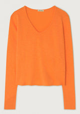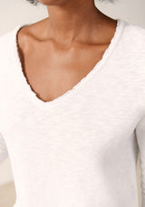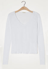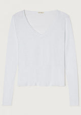 The Sonoma L/S T-Shirt by American Vintage features a V neckline, long sleeves and slightly cropped rolled hemline. It is crafted from 100% Cotton and has a soft fleck finish in the fabrication.