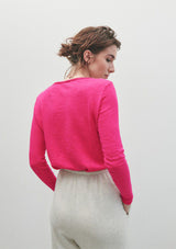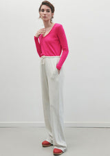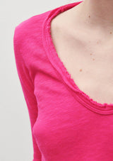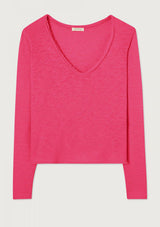 The Sonoma L/S V-Neck T-Shirt by American Vintage features a V neckline, long sleeves and slightly cropped rolled hemline. It is crafted from 100% Cotton and has a soft fleck finish in the fabrication.