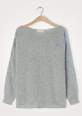 The Toqroad Jumper by American Vintage features a boat neckline, a drop shoulder, long sleeves with ribbed cuffs and rolled hemline. This Sweatshirt is crafted from a wool blend and its loose fit is designed for comfort.