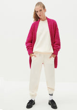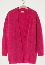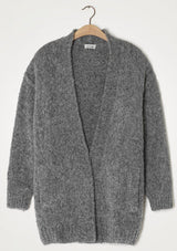 The Tudbury Rounded Cardigan by American Vintage features an open front, side pockets, long banded sleeves and hem. This cardigan is crafted from a wool blend and does not require fastenings as it is designed to wear open.