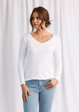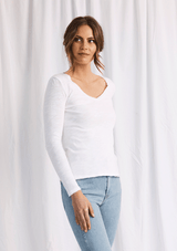 This Top by American Vintage features a relaxed v neckline design with long sleeves. It is crafted from 100% Cotton and has a soft fleck finish in the fabrication.