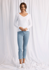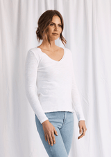 American Vintage V Collar LS Straight Tee-Shirt Polar Melange
