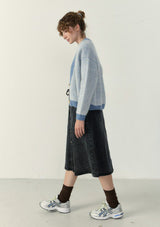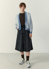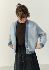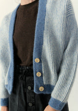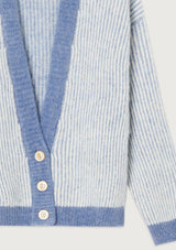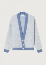 The Vitow Cardigan by American Vintage features a v-neckline, button opening, drop shoulder, full-length sleeves and an "American Vintage" logo patch stitched on the front. This two-tone ribbed cardigan is crafted from an Italian wool blend and is a relaxed fit for winter wear.